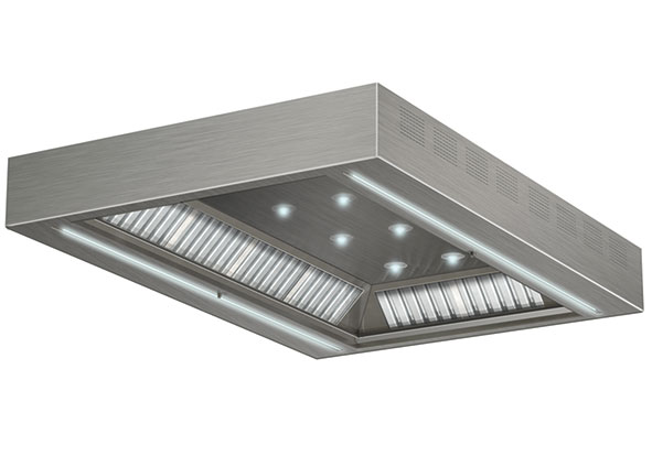 · El seu nou disseny destaca per una aspiració perimetral pensada per poder rendir al màxim en tota la superfície de treball de les cuines industrials de mòdul central. Tanmateix, el seu disseny permet plantejar opcions perquè sigui en format mural.
